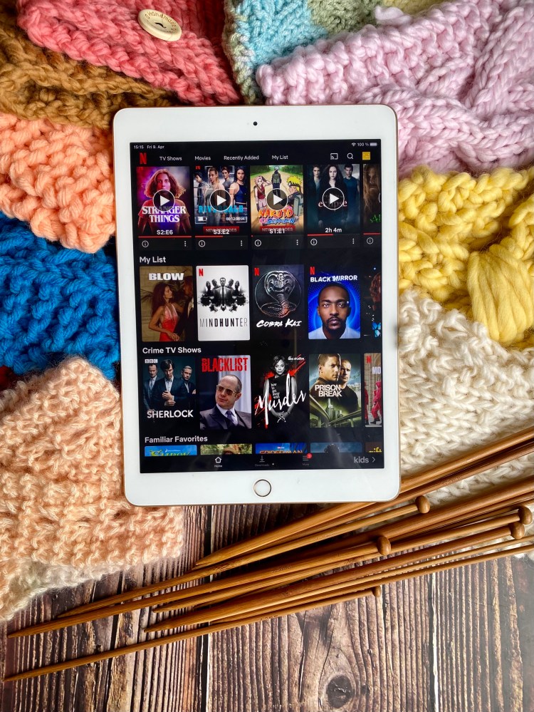 Knitflix – knitting whilst binge watching streamed series and movies on Netflix.