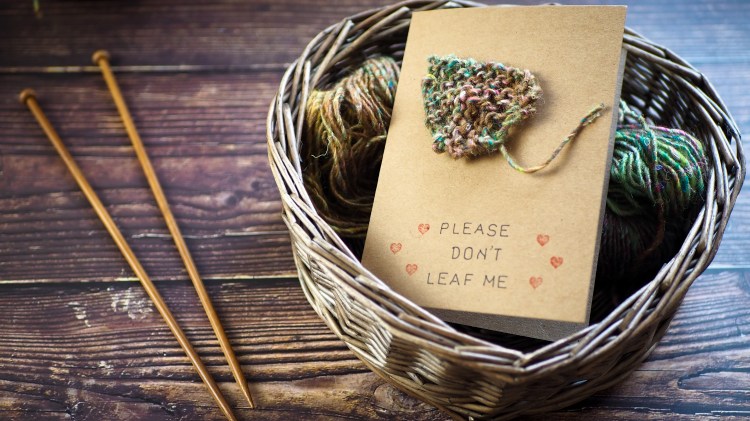 If you don’t knit but like the ‘don’t leaf me’ idea, you could purchase hand made knit or crochet leaves instead of making them yourself.