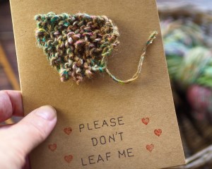 The leaf on this card was hand knit using our easy leaf knitting pattern.