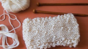 The stitch is usually worked in a thinner yarn. However, it is fun to take these old fashioned knitting stitches and use them with modern, chunky yarn. It gives an entirely new look to a vintage stitch.