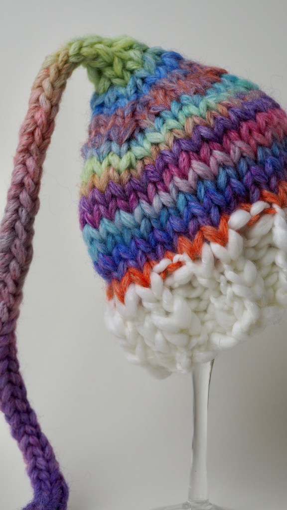 This article contains the free knitting pattern to knit a very cute newborn baby elf hat.