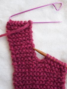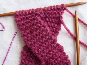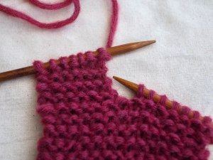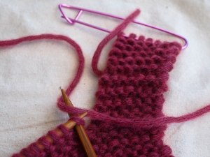 Then simply knit – garter stitch – until your piece measures 16cm from the cast on edge.