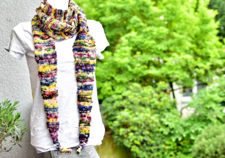 Once your scarf is dry, you can wear it with pride and wait for the compliments! We tied knots at each end for a nice detail. You could add a tassels or even sew on bells if you wanted to!
