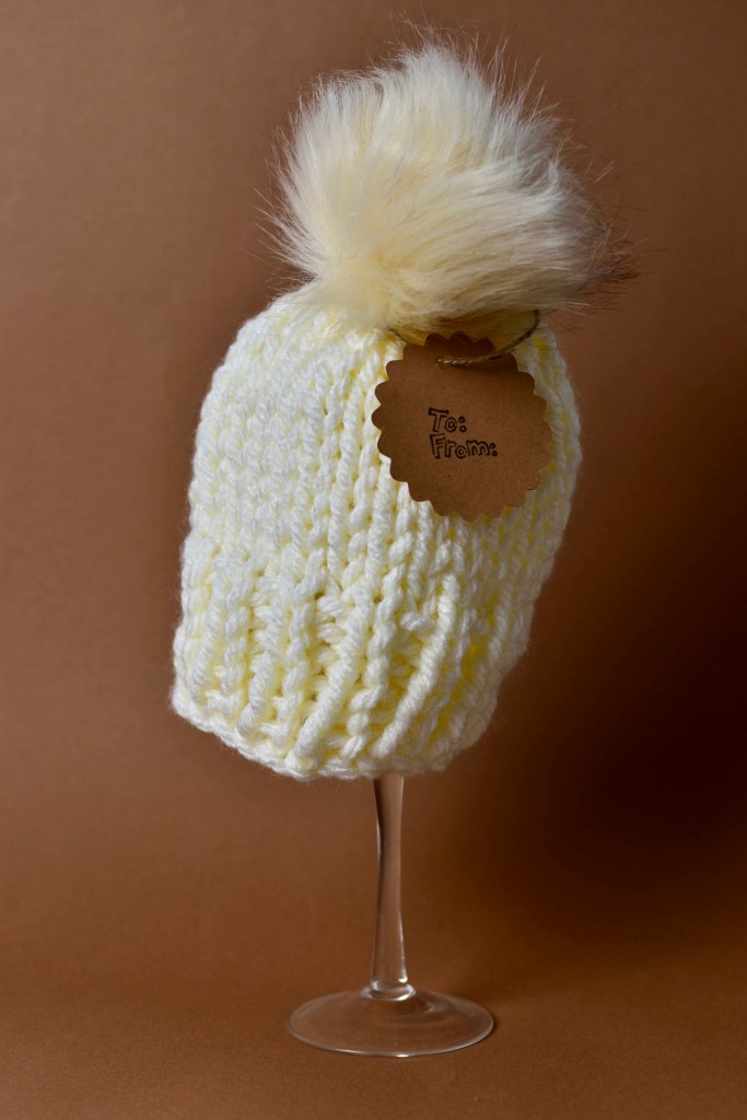 - Faux fur pompom or extra yarn to make a yarn pompom.