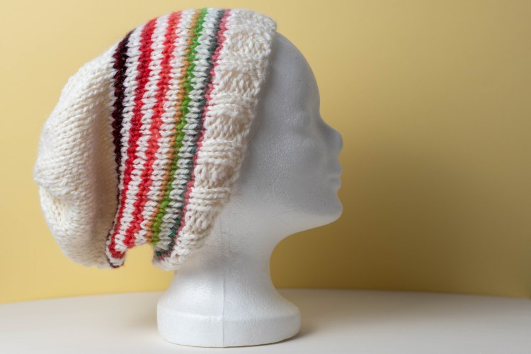 Stripey Slouch Beanie Hat Free Knitting Pattern