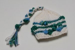 • Stripes in cowls, scarves and hats.  In fact, stripes on anything.  You can see a little hat I knit with a bit of handspun yarn added for an interesting accent.