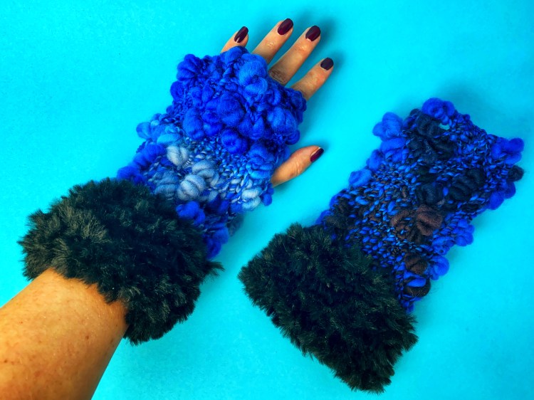 And that’s it – a really easy knitting pattern for some fun fingerless mittens.