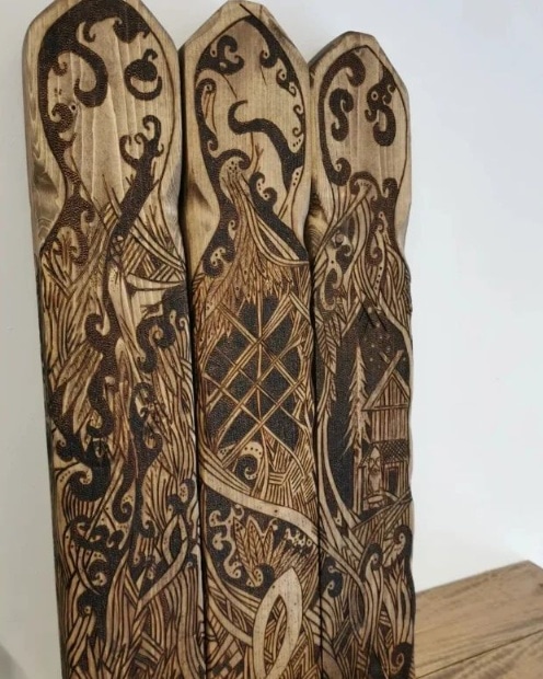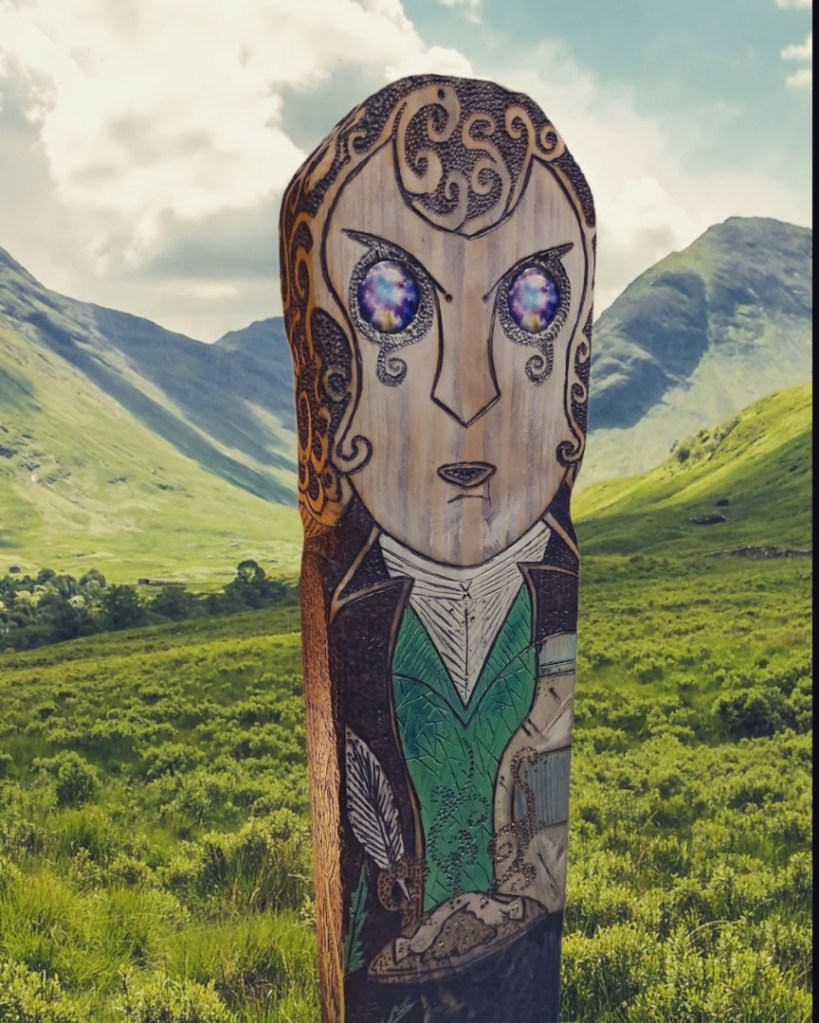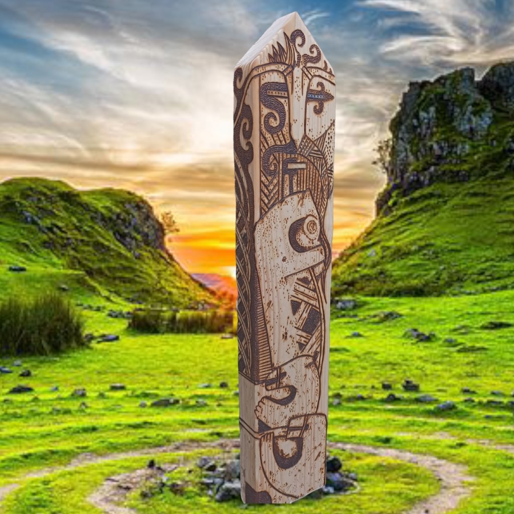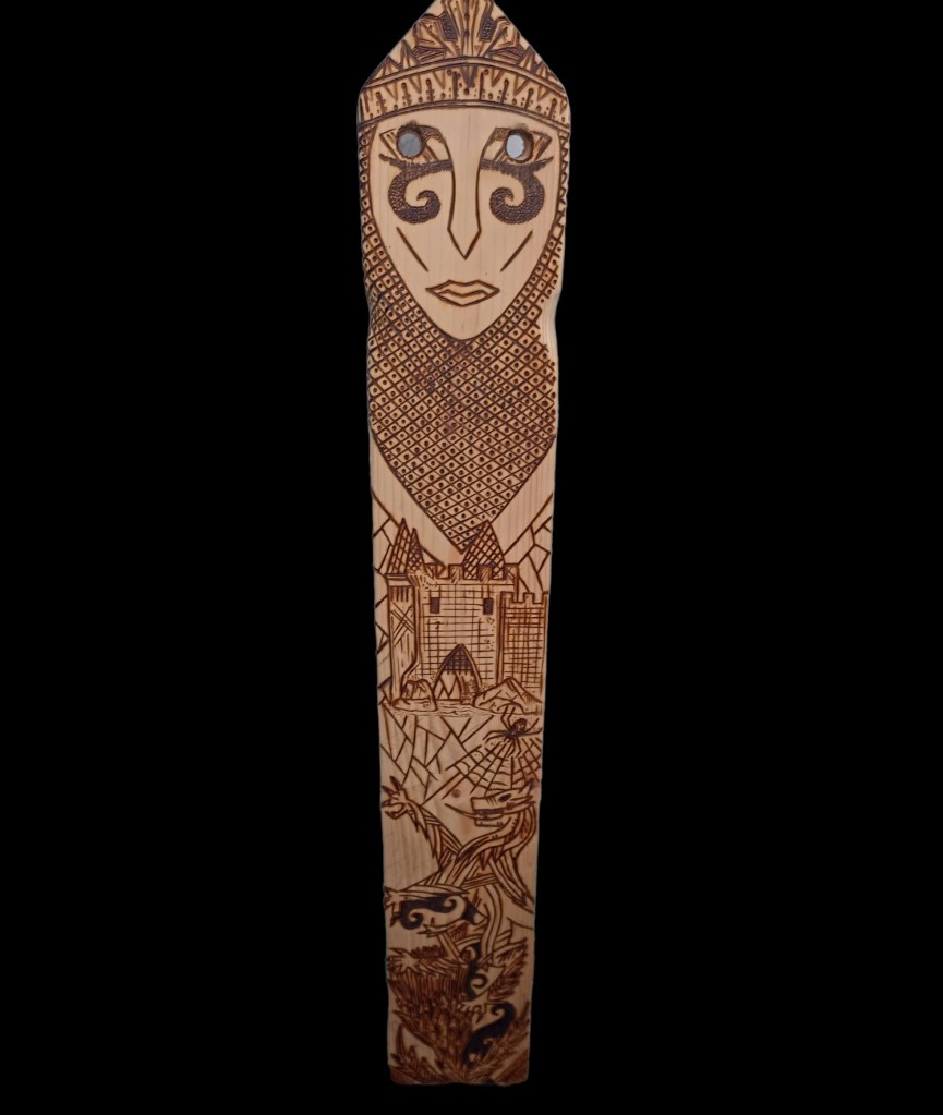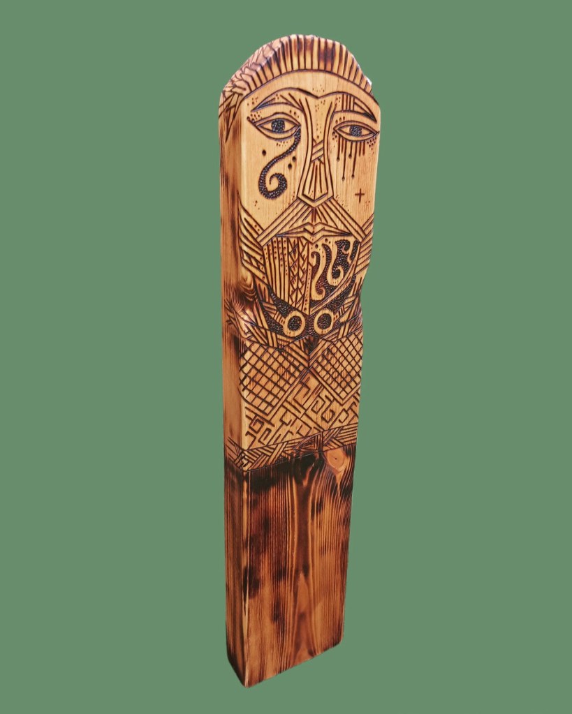 Ricky displays his spectacular Celtic wooden art at craft fairs and festivals in Scotland, and would absolutely love to wear the sort of Orkney hood that craftsman would sport back in mediaeval times.