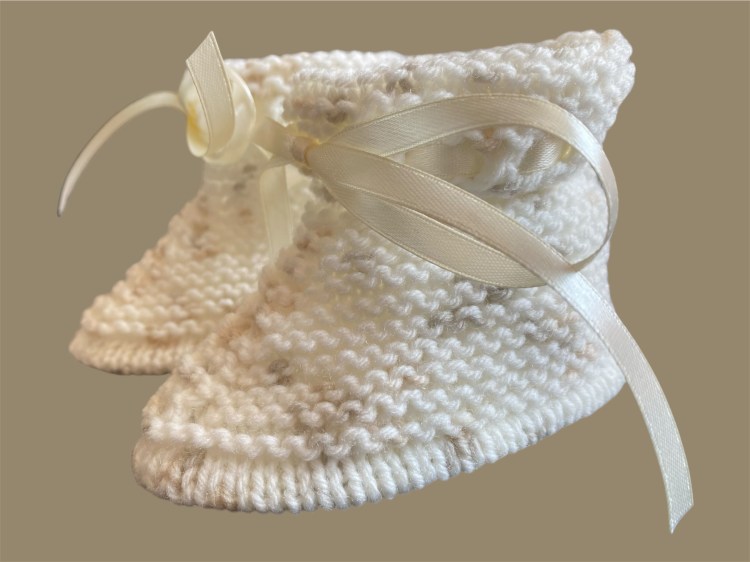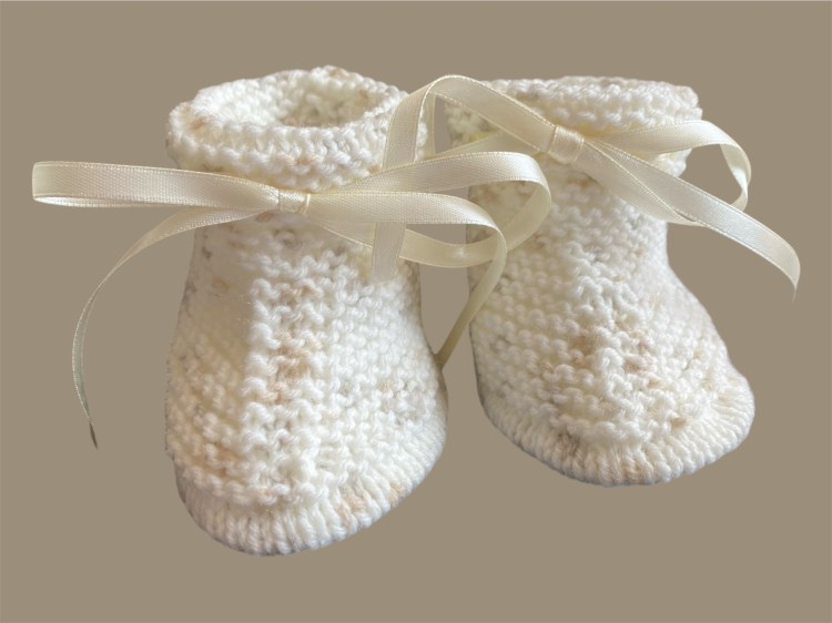 The booties are quite easy to knit using only garter stitch (knit every row).