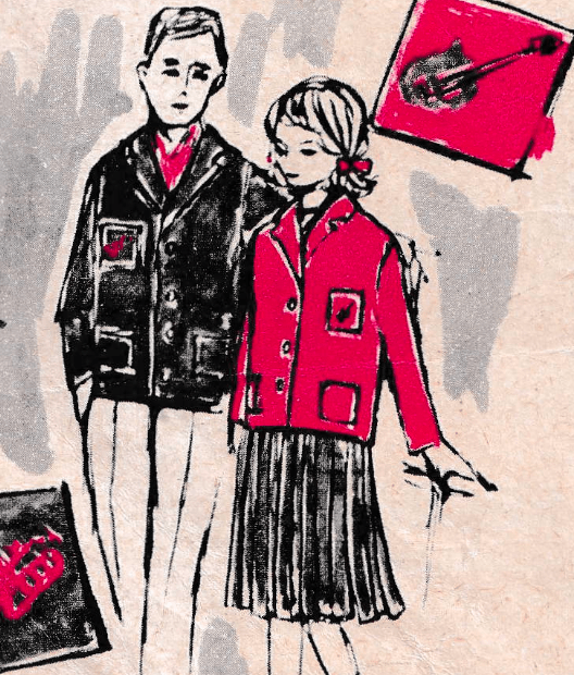 Now that we have talked about how to position your intarsia chart, it is time for the fun part, your free download. As mentioned above, you will find four vintage intarsia charts included, a motorbike, a guitar, a boat and a saxophone. These are genuine old designs with plenty of character, and they lend themselves beautifully to sweater fronts or even split across the two sides of a cardigan, just as shown in the picture. They have that bold, graphic look that works so well in stocking stitch.